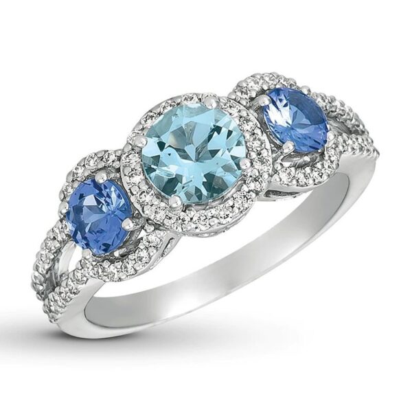 Diamond/Sapphire Engagement Ring 1 cttw Princess/Round 14K Gold