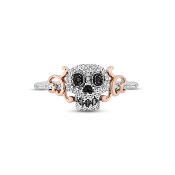 Black & White Diamond Sugar Skull Ring 1/5 ct tw Sterling Silver & 10K Rose Gold