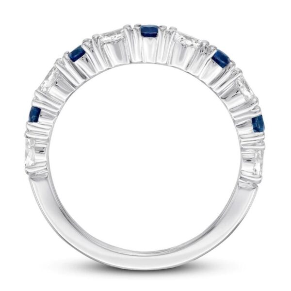 Marquise round diamonds and round natural sapphires alternate along this beautiful wedding band for her . Styled in 14K white gold, the ring has a total diamond weight of 1/2 carat.
