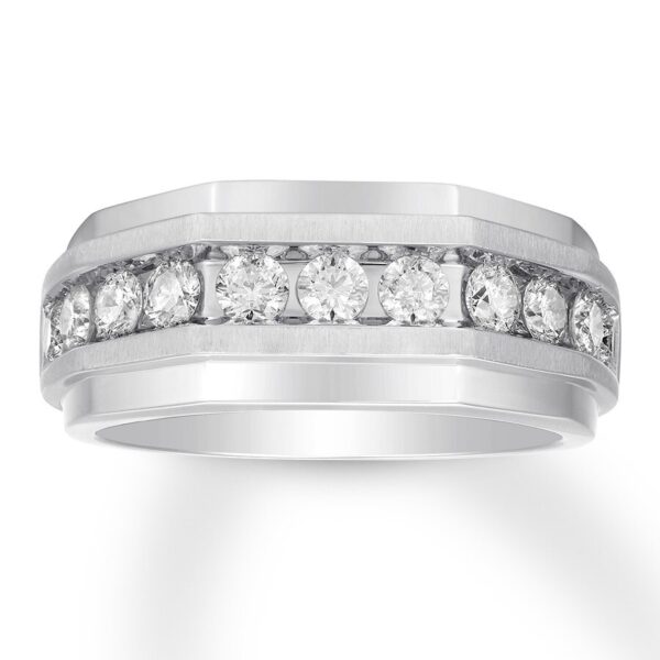 Men’s Diamond Wedding Band 1 ct tw Round-cut 10K White Gold
