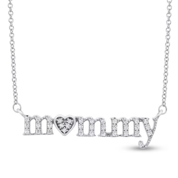 “Mommy” Necklace 1/6 ct tw Diamonds Sterling Silver 17″